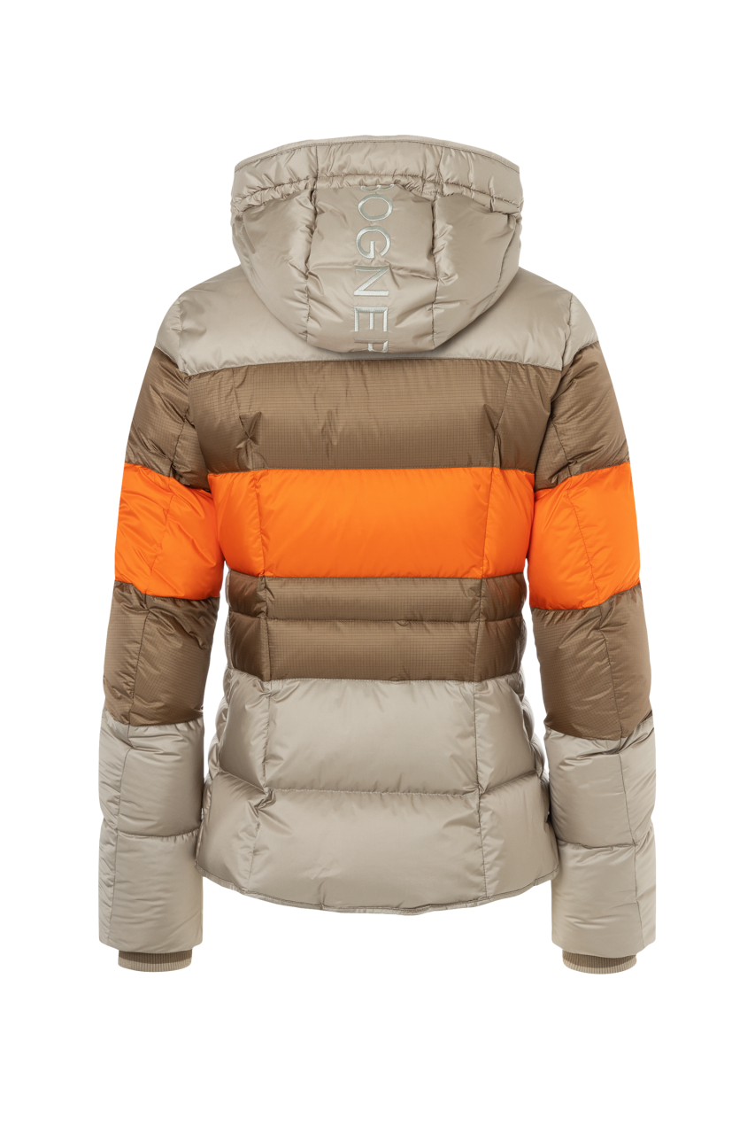 Yanlarda bulunan fonksiyonel büzgülü fermuarlı cepler, tüm değerli eşyalarınızı güvenle saklamanıza yardımcı olur. Kapüşondaki metalik şık Bogner yazısı ve fermuarlardaki Bogner etiketleri, bu şık bayan kayak ceketinin uyumlu genel resmini tamamlıyor