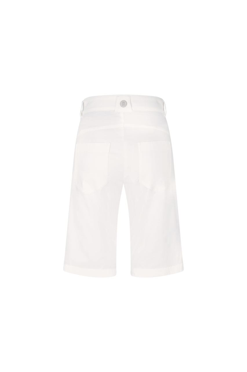 Pamuk ve teknik elyaflardan üretilen Bermuda Jolita şortları hafif gabardin kalitesinde sunulmaktadır. Esnek kaplama sayesinde çok yönlü, yüksek taşıma konforuyla öne çıkıyor. Kemer halkaları ile yan ve arka cepler klasik bir görünüm yaratırken arka bel bandındaki ince dikişler zarif vurgular oluşturur.