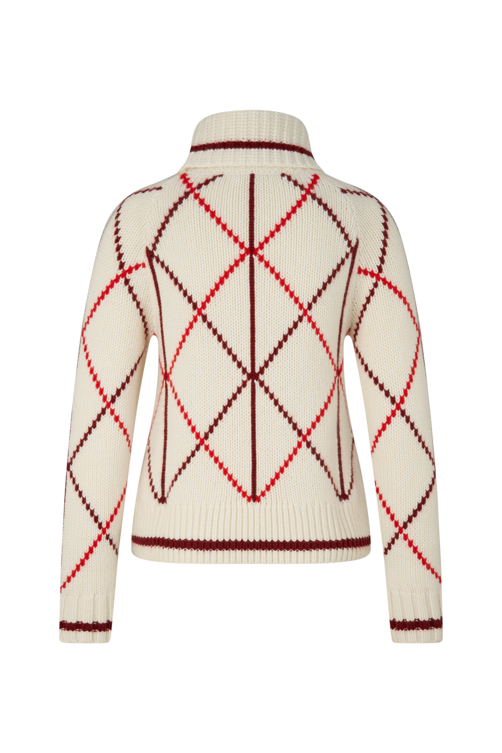 Kontrast oluşturan elmas sanat eseri tasarımıyla Solange kazak şık bir favoridir. Saf kaşmir lüks bir zarafet katarken, reglan kollar ve fitilli manşetler gündelik bir hava katıyor. Yumuşakça düşen balıkçı yaka kadınsı bir görünüm sağlar.